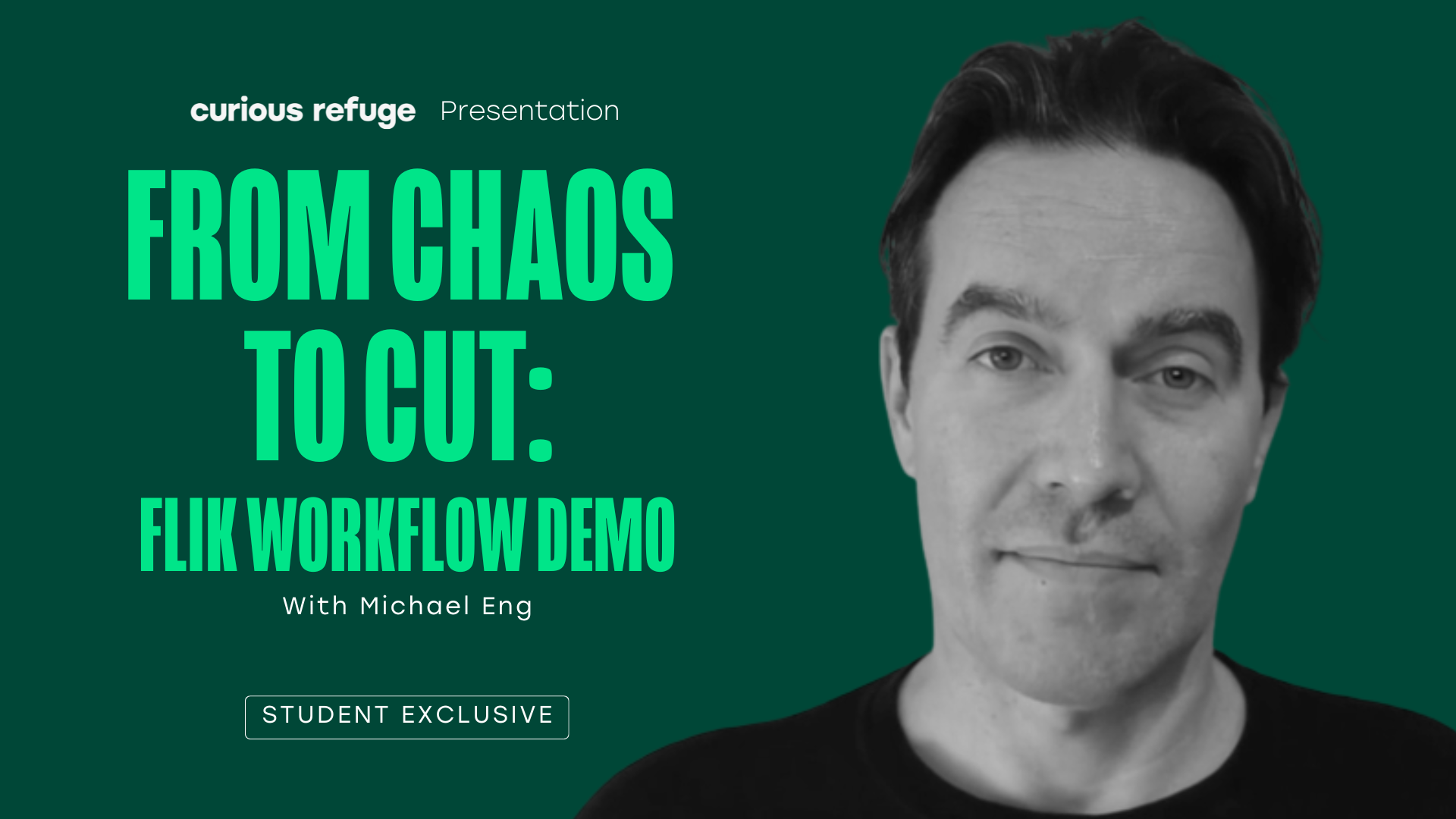 Back to All Events Curious Refuge Workshops: From Chaos to Cut: Flik Workflow Demo with Michael Eng Tuesday, January 27, 2026 11:00 AM 12:00 PM Google Calendar ICS Curious Refuge Workshops are 1-hour live sessions designed to give you deeper insight into industry workflows, cutting-edge tools, and real creator experiences.From Chaos to Cut: Flik Workflow Demo with Michael EngJoin us on Zoom: https://us06web.zoom.us/j/88557506133 Sign Up for the Event