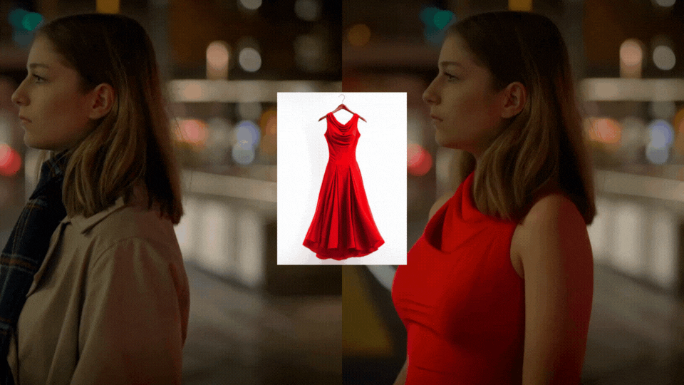 We took it further by uploading a red dress image alongside the video and prompting Aleph to apply it.