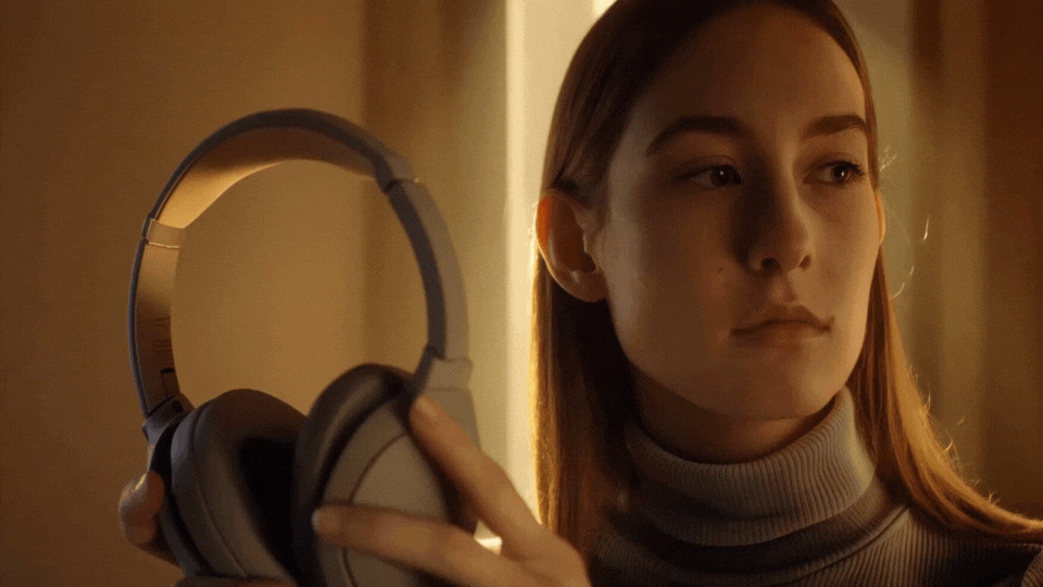 Aleph also gives you the power to relight entire scenes — from daylight to golden hour, or any look in between. We tested it on a series of clips showing a woman holding headphones and checking her phone. Originally shot in broad daylight, we asked Aleph to reimagine the lighting as warm, backlit sunset.