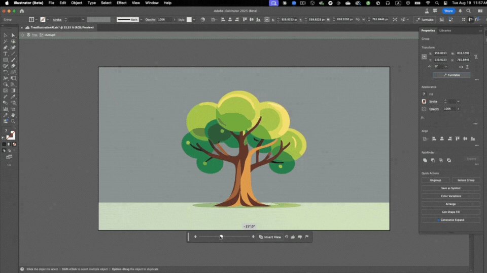 Adobe dropped Turntable inside Illustrator’s beta. It lets you rotate 2D vector art in 3D, treating it like a lightweight 3D model.