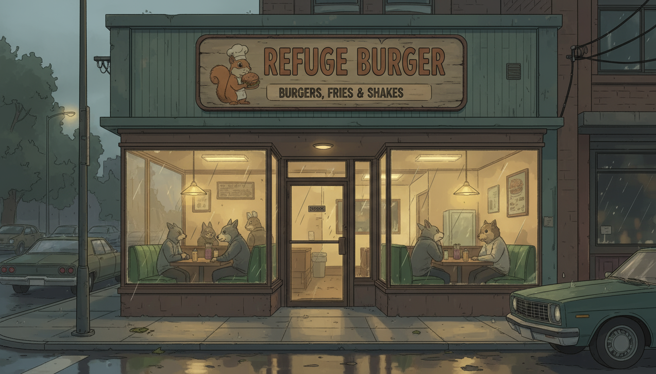 I created an animated story where a dog goes to a diner called the reuge diner to get something to eat. He finds out they only serve food with peanuts in all of the recipes. Unfortunately, he’s allergic to peanuts, but its been awhile so he gives it a shot. He eats the burger, then dies.