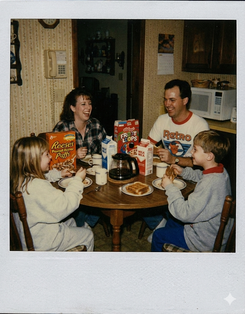What you may not have noticed is that we went in and prompted Nano Banana Pro to switch out the cereal boxes with more accurate branding for the time that we wanted this image to take place.